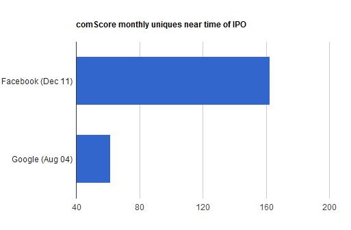 […] I pulled comScore numbers from the time of Google’s IPO in August 2004. Facebook already has 100 million more users than Google did at the time. Back then, Google directly reached less than 40% of the U.S. Internet population. Facebook already […]